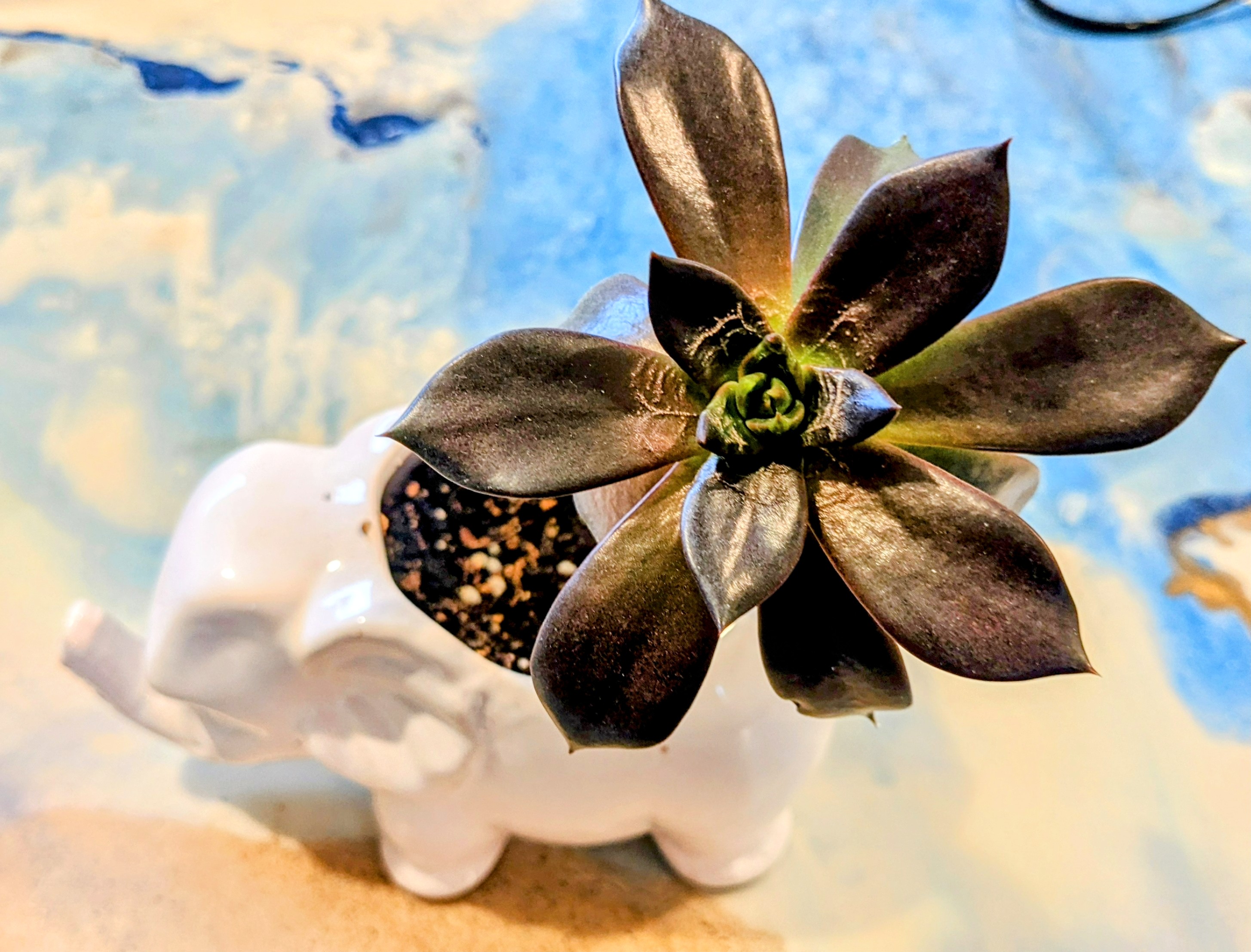 Black Prince Echeveria likes lots of sun light and will reward you with beautiful leaves of green to burgundy to black.